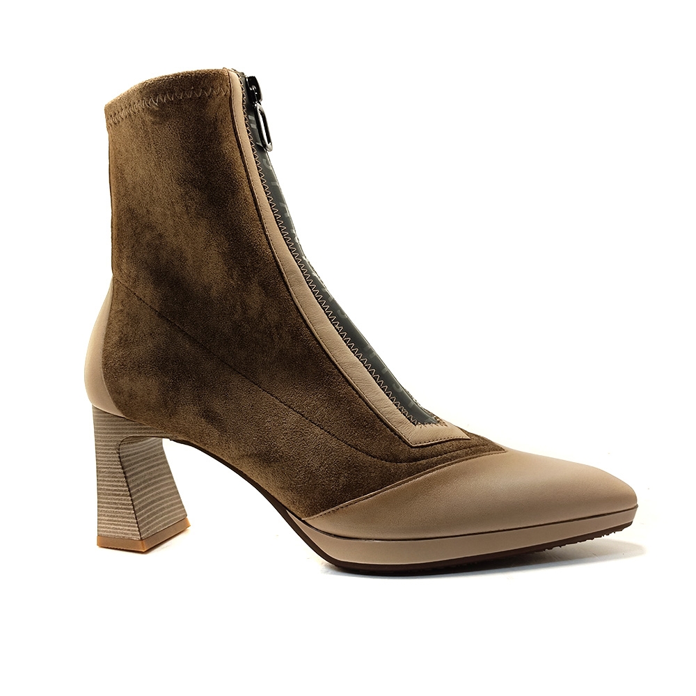 Botín de punta afilada con detalle de cremallera estanca que facilita el calce.