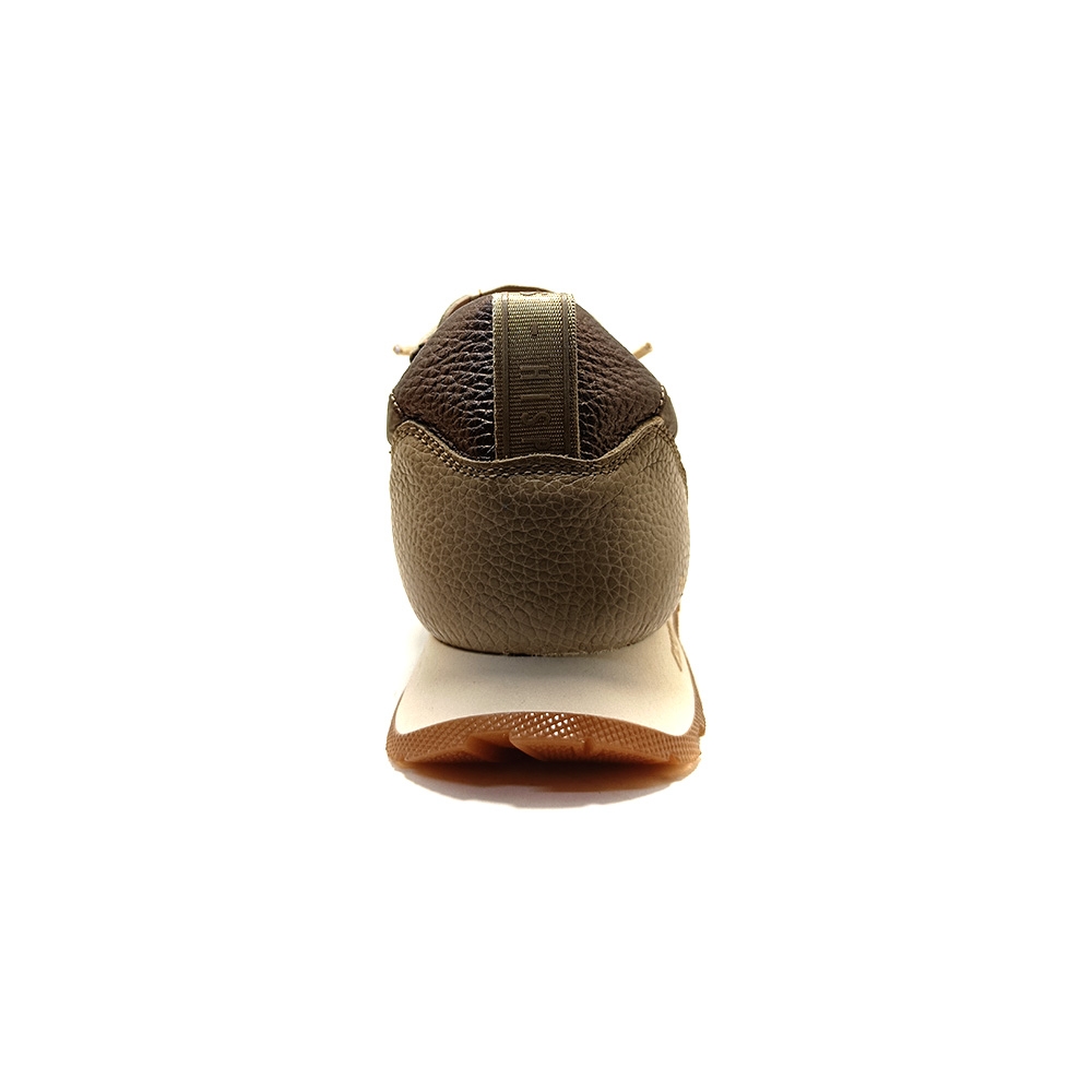 Elaborado en piel combinada con nylon.