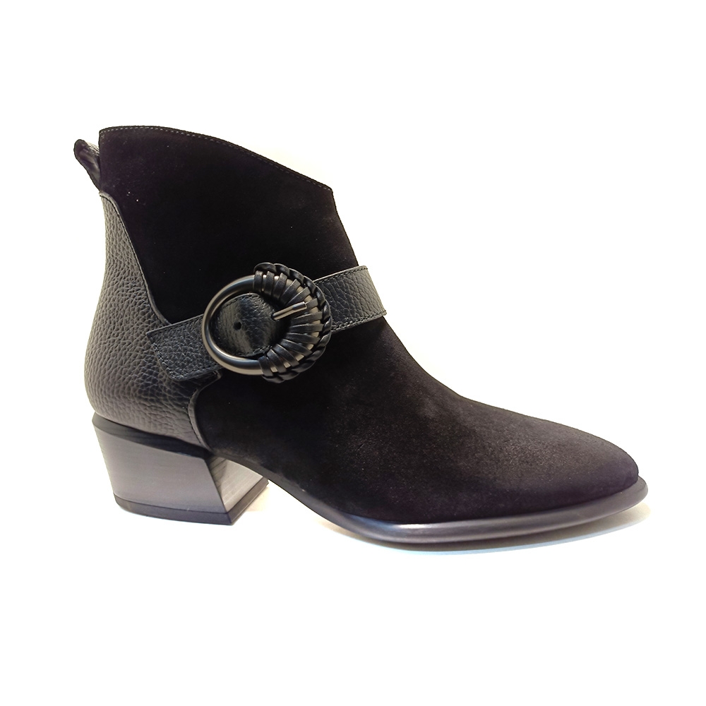 Piso efecto goma con diseño de perfil de tacos y tacón cubano en acabado madera de 5 cm.