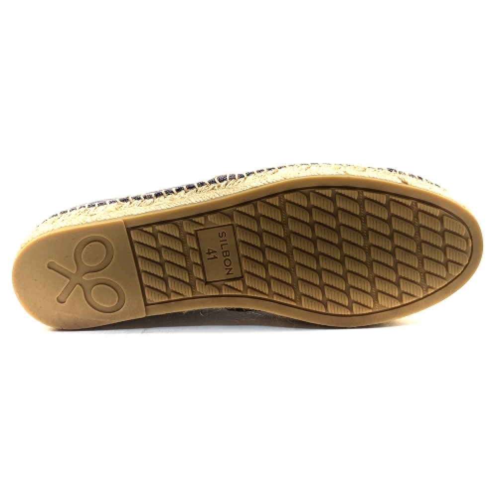 Alpargata clásica confeccionada en 100% algodón. Presenta detalle de raquetas bordadas y etiqueta Silbon trasera. Cuenta con suela de yute natural y piso de goma.