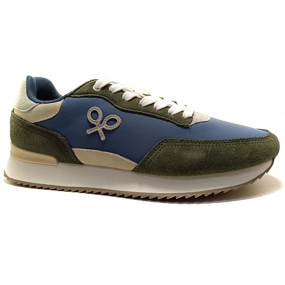 Zapatilla running con aplique de raqueta lateral y cierre con cordones personalizados. Cuenta con suela de goma confortable, interior en piel suave y etiqueta personalizada en lengüeta