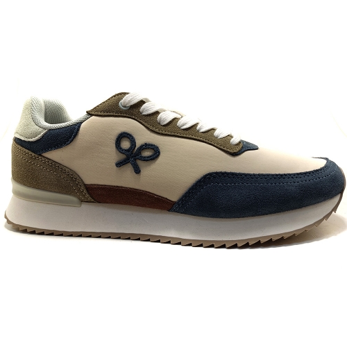 Zapatilla running con aplique de raqueta lateral y cierre con cordones personalizados. Cuenta con suela de goma confortable, interior en piel suave y etiqueta personalizada en lengüeta