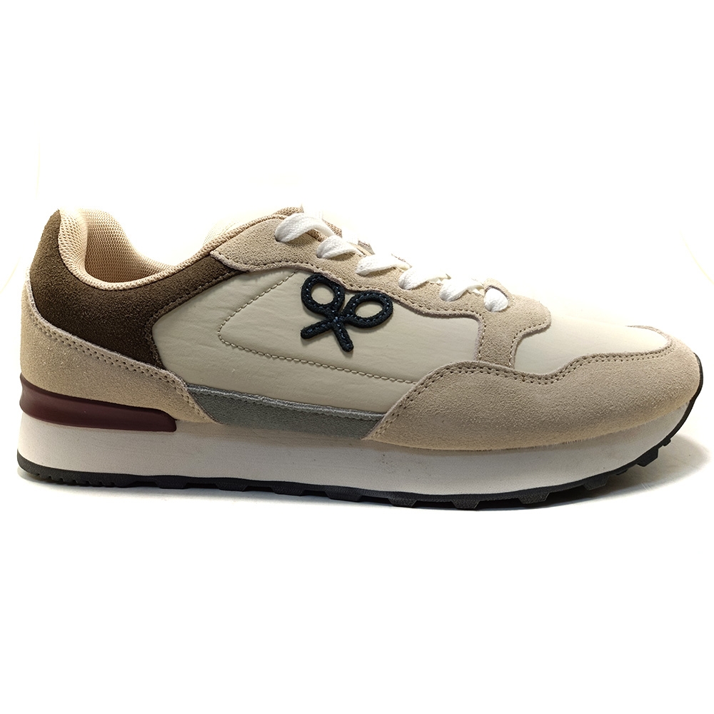 Zapatilla running con aplique de raqueta lateral y cierre con cordones personalizados. Cuenta con suela de goma confortable, interior en piel suave y etiqueta personalizada en lengüeta