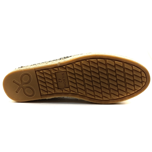 Alpargata clásica confeccionada en 100% algodón. Presenta detalle de raquetas bordadas y etiqueta Silbon trasera. Cuenta con suela de yute natural y piso de goma.