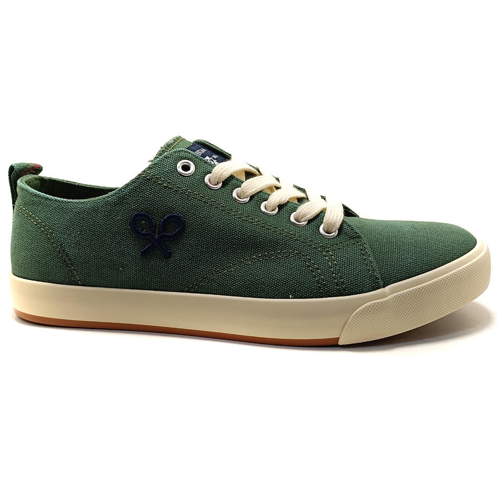 Zapatilla clásica de lona confeccionada en algodón. Presenta bordado de raqueta lateral, cierre con cordones y lengüeta con detalle de etiqueta tejida. Cuenta con letras microinyectada