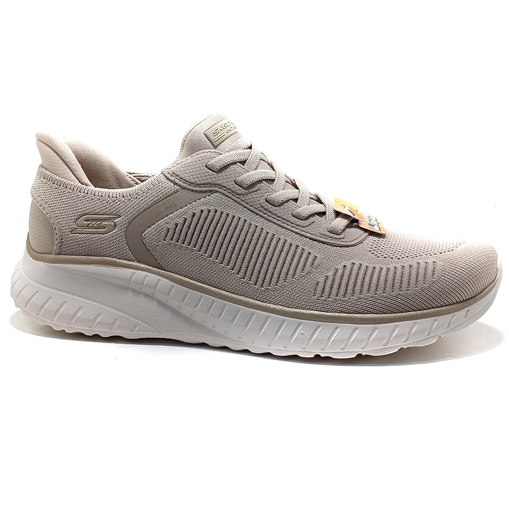 Adéntrate en el estilo deportivo y la comodidad de Skechers Hands Free Slip-ins®: BOBS Sport™ Squad Chaos - Current Muse. Diseñado con nuestra exclusiva Heel Pillow™, este modelo moderno presenta una parte superior de knit técnico con cordones elásticos y una plantilla con amortiguación Skechers Memory Foam™.