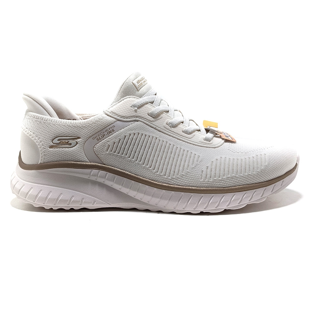 Adéntrate en el estilo deportivo y la comodidad de Skechers Hands Free Slip-ins®: BOBS Sport™ Squad Chaos - Current Muse. Diseñado con nuestra exclusiva Heel Pillow™, este modelo moderno presenta una parte superior de knit técnico con cordones elásticos y una plantilla con amortiguación Skechers Memory Foam™.