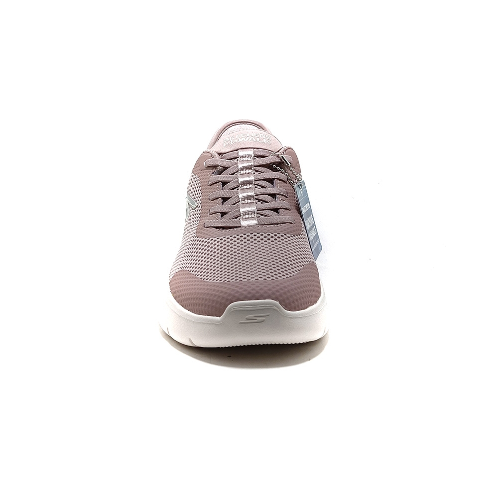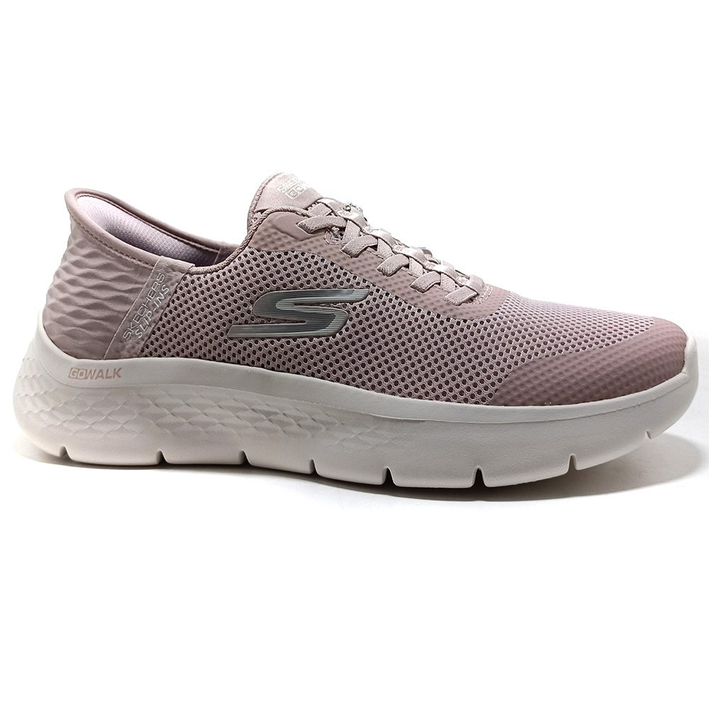 Disfruta de la comodidad y la amortiguación que te ofrece la Skechers Hands Free Slip-ins®: GO WALK Flex™ - Grand Entry. Estas deportivas veganas sin cordones, diseñadas con nuestro sistema Heel Pillow™, cuentan con una parte superior de tejido sintético y malla con cordones elásticos, una plantilla Skechers Air-Cooled Memory Foam™ y amortiguación ligera ULTRA GO®.