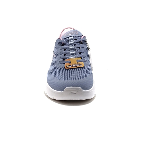Disfruta de la comodidad y la amortiguación que te ofrece la Skechers Hands Free Slip-ins®: GO WALK Flex™ - Grand Entry. Estas deportivas veganas sin cordones, diseñadas con nuestro sistema Heel Pillow™, cuentan con una parte superior de tejido sintético y malla con cordones elásticos, una plantilla Skechers Air-Cooled Memory Foam™ y amortiguación ligera ULTRA GO®.