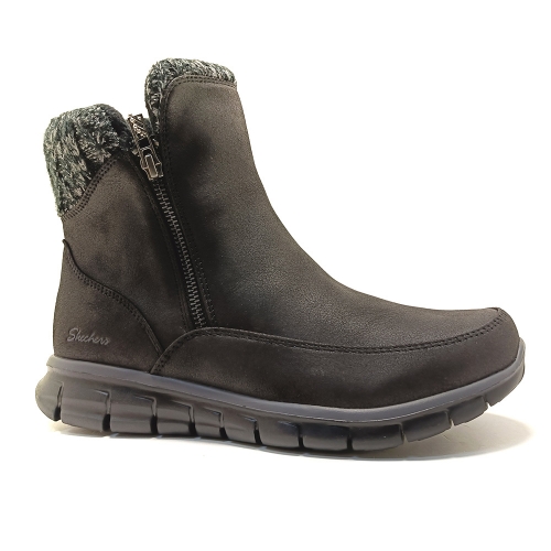 Abrígate bien, empezando por los pies, con la Skechers Synergy - Lovely Collab. Esta bota sneaker con tratamiento 3M® Scotchgard® una cremallera lateral que facilita el calzado, un suave forro de chenilla y Warm Tech Memory Foam con amortiguación para mantener los pies calientes.