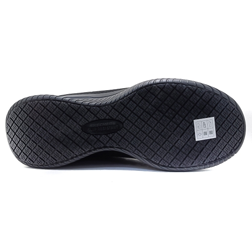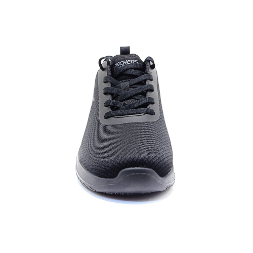 Luce un estilo deportivo en el trabajo con Skechers Work™  Este diseño deportivo de trabajo con cordones cuenta con una parte superior  de malla, una cómoda plantilla con amortiguación Skechers Air-Cooled Memory Foam™ y una suela antideslizante.
