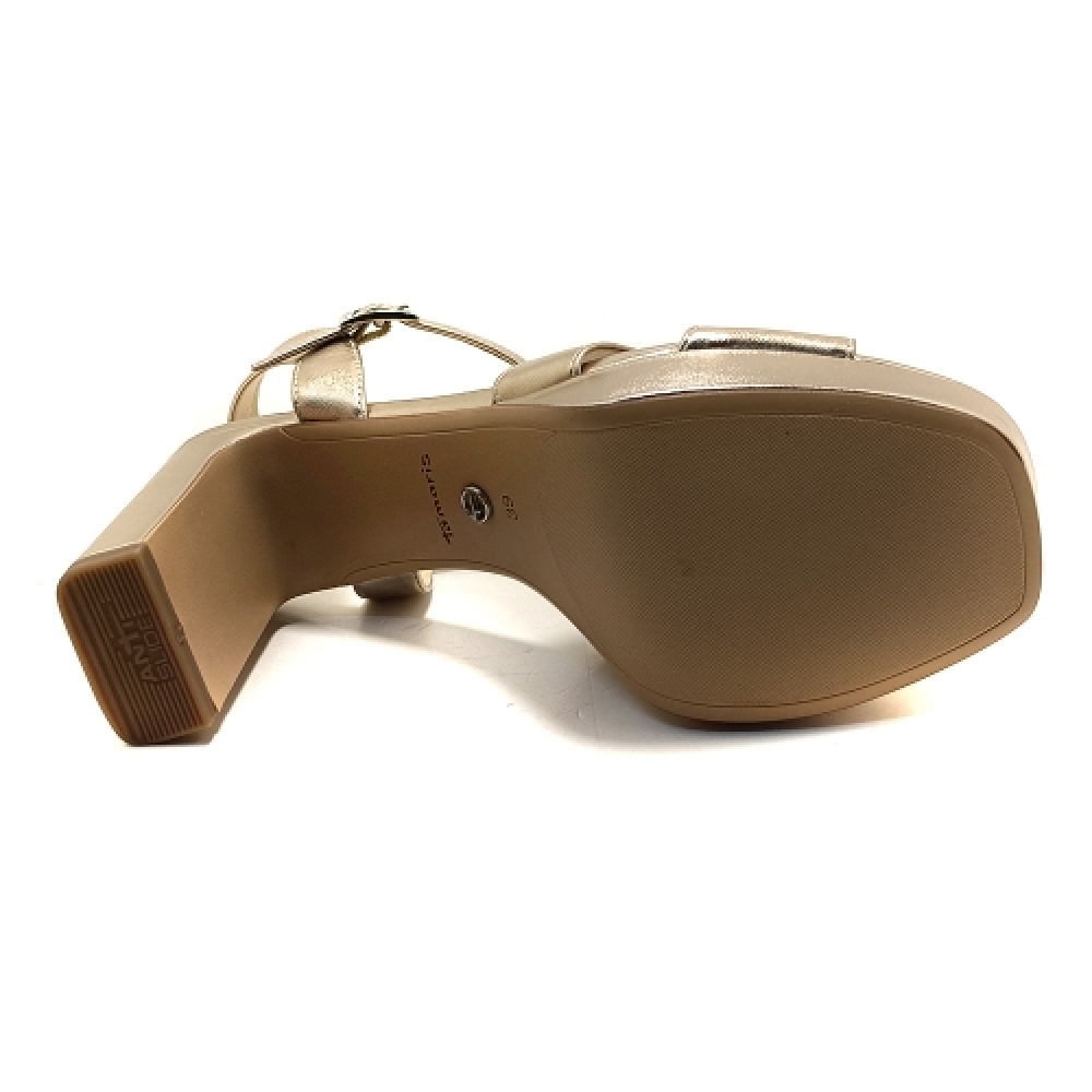 Realza tu estilo con estas sandalias veganas de tacón Tamaris y disfruta de cada momento, ya sea una fiesta o un día de trabajo. El tacón de 9 cm te brinda seguridad al instante, mientras que la plantilla TOUCH-IT y la amortiguación ANTIshokk te ofrecen una comodidad duradera. Siéntete segura en cada paso gracias a la innovadora suela ANTIslide y el práctico cierre de hebilla. Estas sandalias se adaptan a tu estilo de vida y dejan que tu personalidad única brille sin esfuerzo.